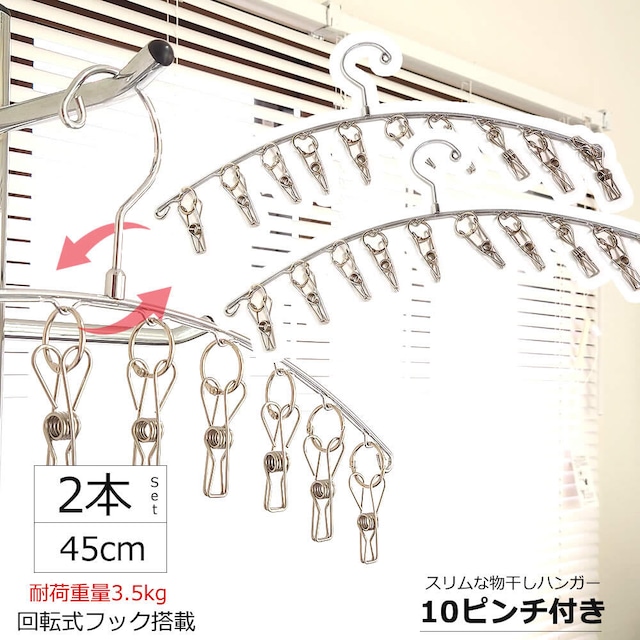 10ピンチ付 ステンレス 物干しハンガー 2本セット