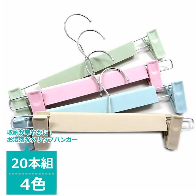 カラープラスチックズボン用ハンガー 20本セット (4色)