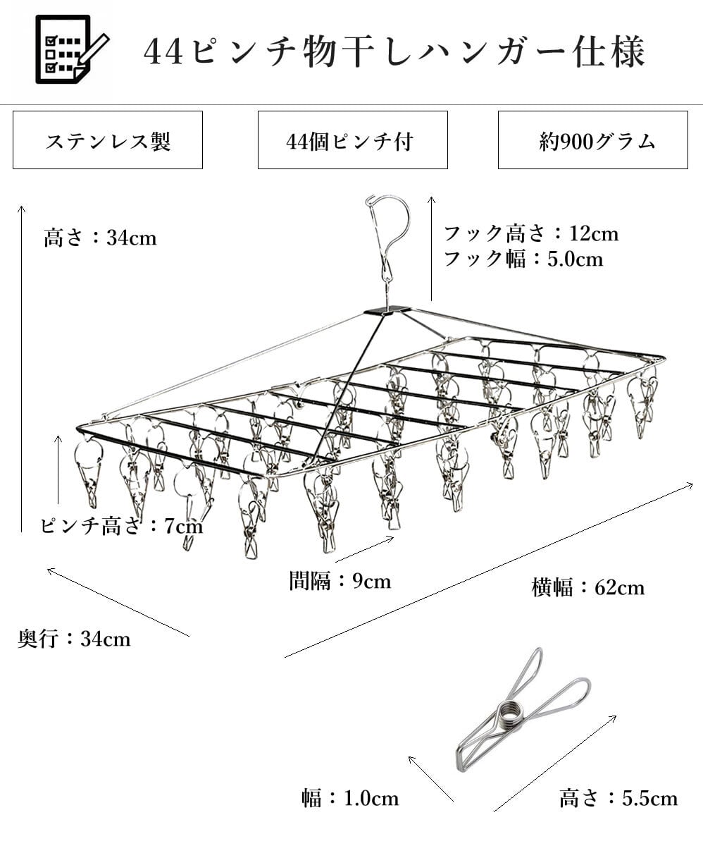 横幅:約62cm/高さ:約34cm/奥行約:34cm/フックの高さ:約12cm/フック幅:約5cm/ピンチ間隔:約9cm/太さ:約4.0mm/重さ:約900g