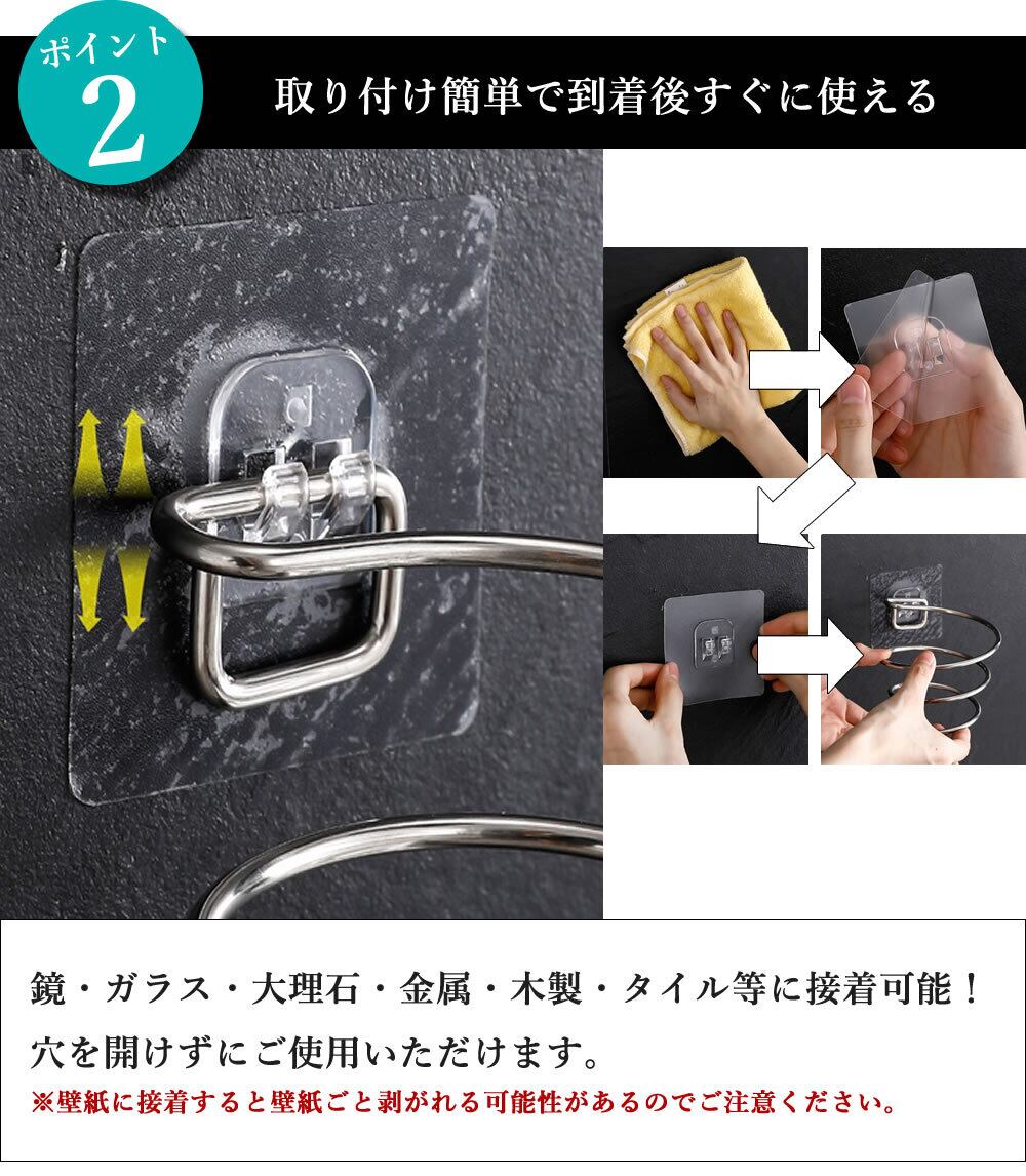固定時には穴をあけない、強力シールにより鏡やガラスなどに簡単に接着可能です。