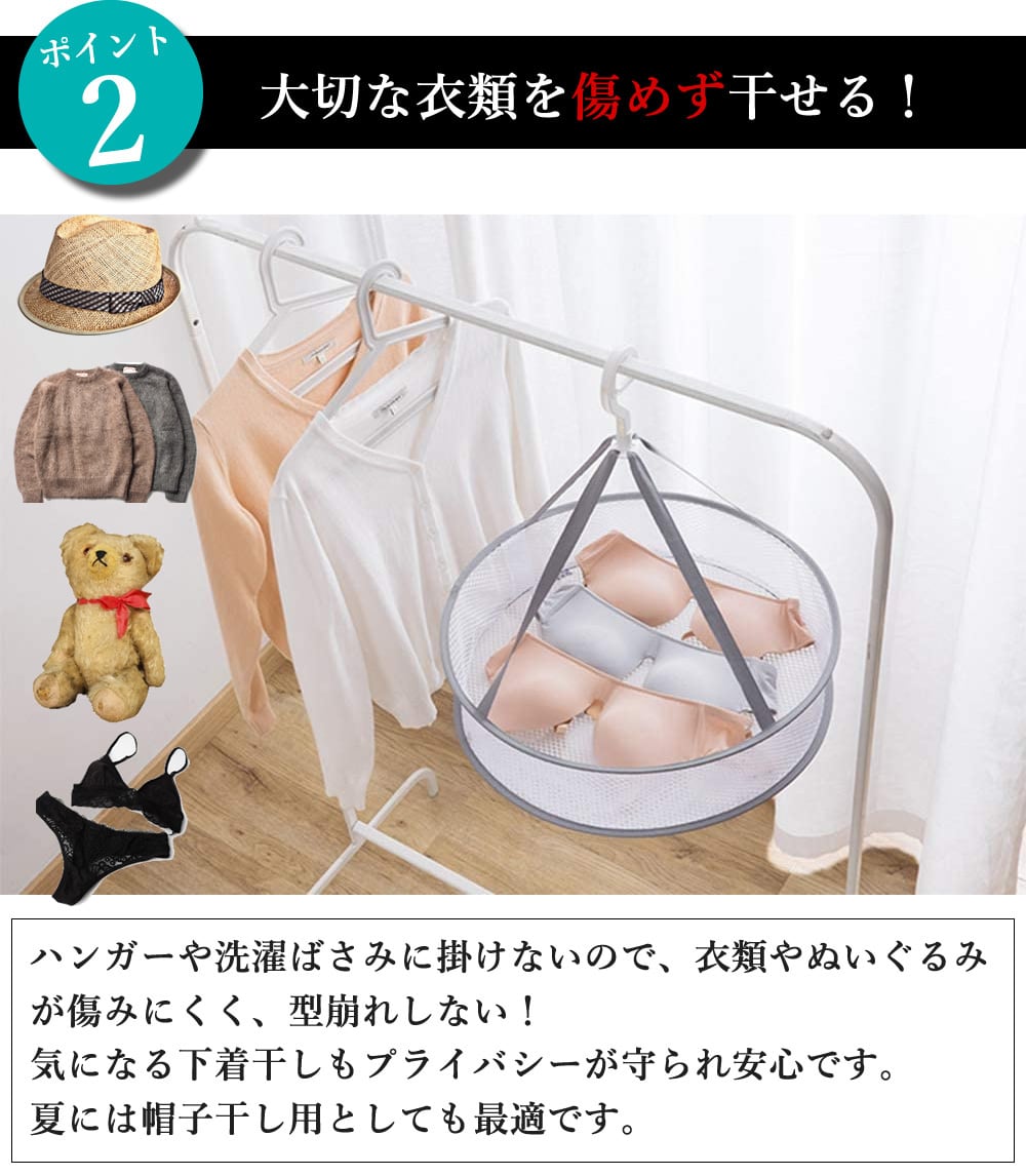 通常物干しハンガーの洗濯ばさみで挟むより、衣類を傷めず飛ばされることもないので、ただいま人気のアイテム♪