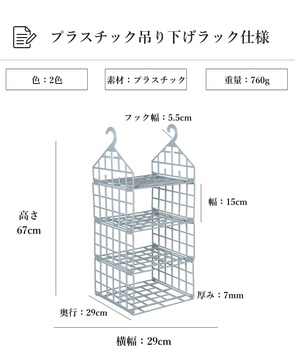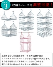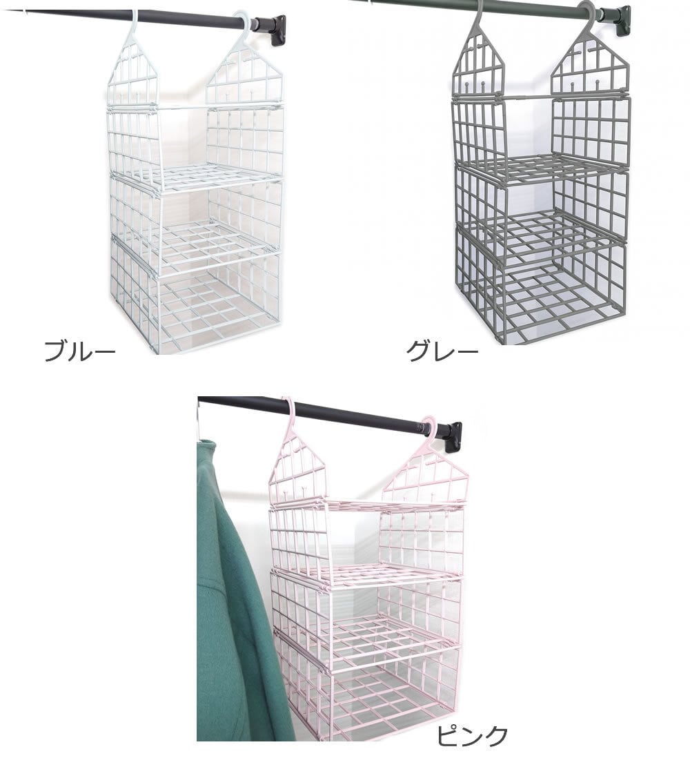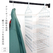 クローゼット吊り下げ収納4段ラック 2個セット (3色)