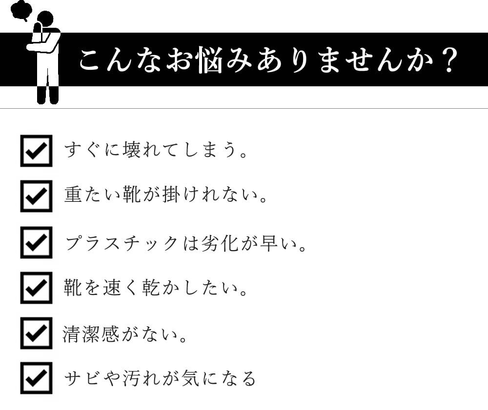 耐荷重量3キロと重たい靴を掛けても壊れたり、変形しません。