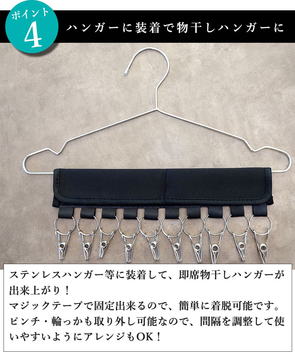 ハンガーはもちろん、物干し竿やポール、パイプ型取っ手などにも可!