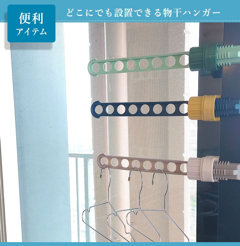 窓枠/ドア用 物干しハンガー 2本セット(3色)