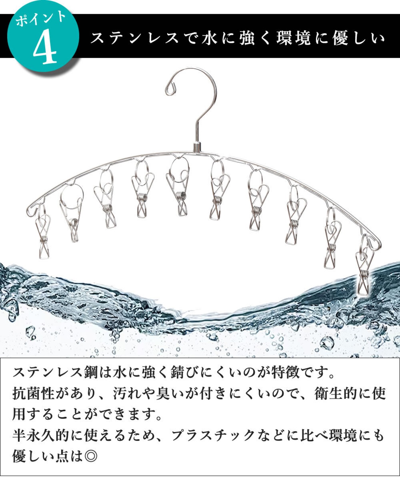 10ピンチ付 ステンレス 物干しハンガー 4本セット