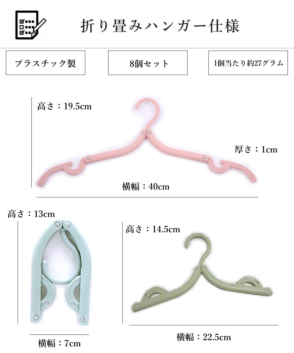 折り畳みハンガー 8本セット (22.5cm〜40cm)