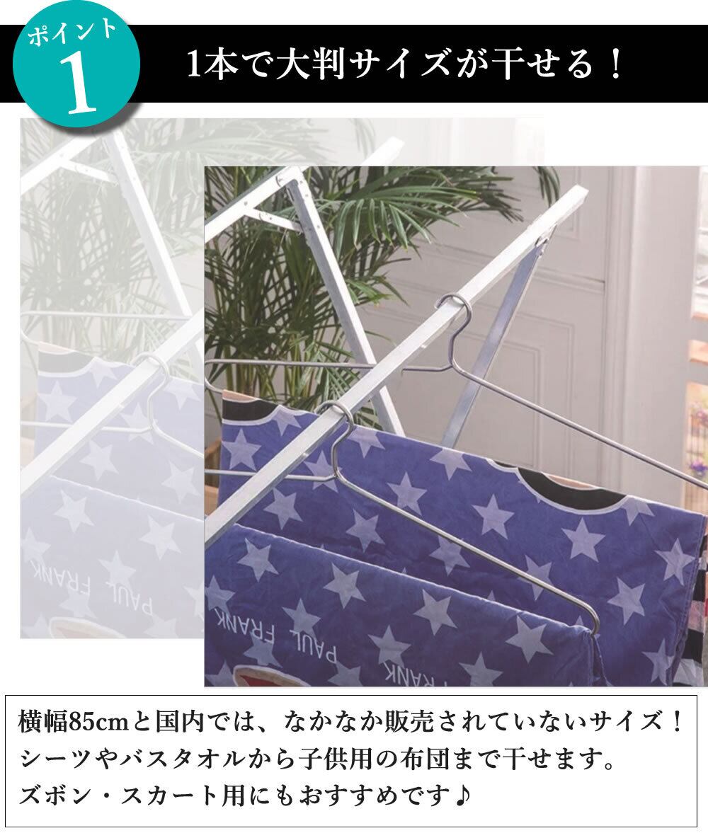 なんと幅85cmのワイドなタイプのステンレスハンガー。