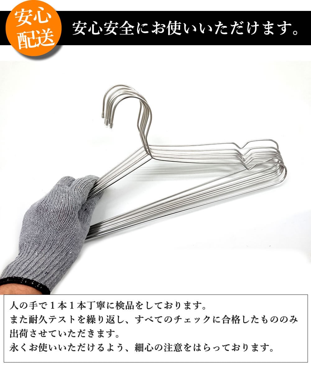 またステンレスなので洗濯物にも使え錆びにくいので、ながく愛用していただけること間違いありません。 水分を含んだ洗濯物は重くなり、針金ハンガーやプラスチックハンガーだと破損してしまう事がありますが、当店の「KUENTAIハンガー」であれば破損することはございません。