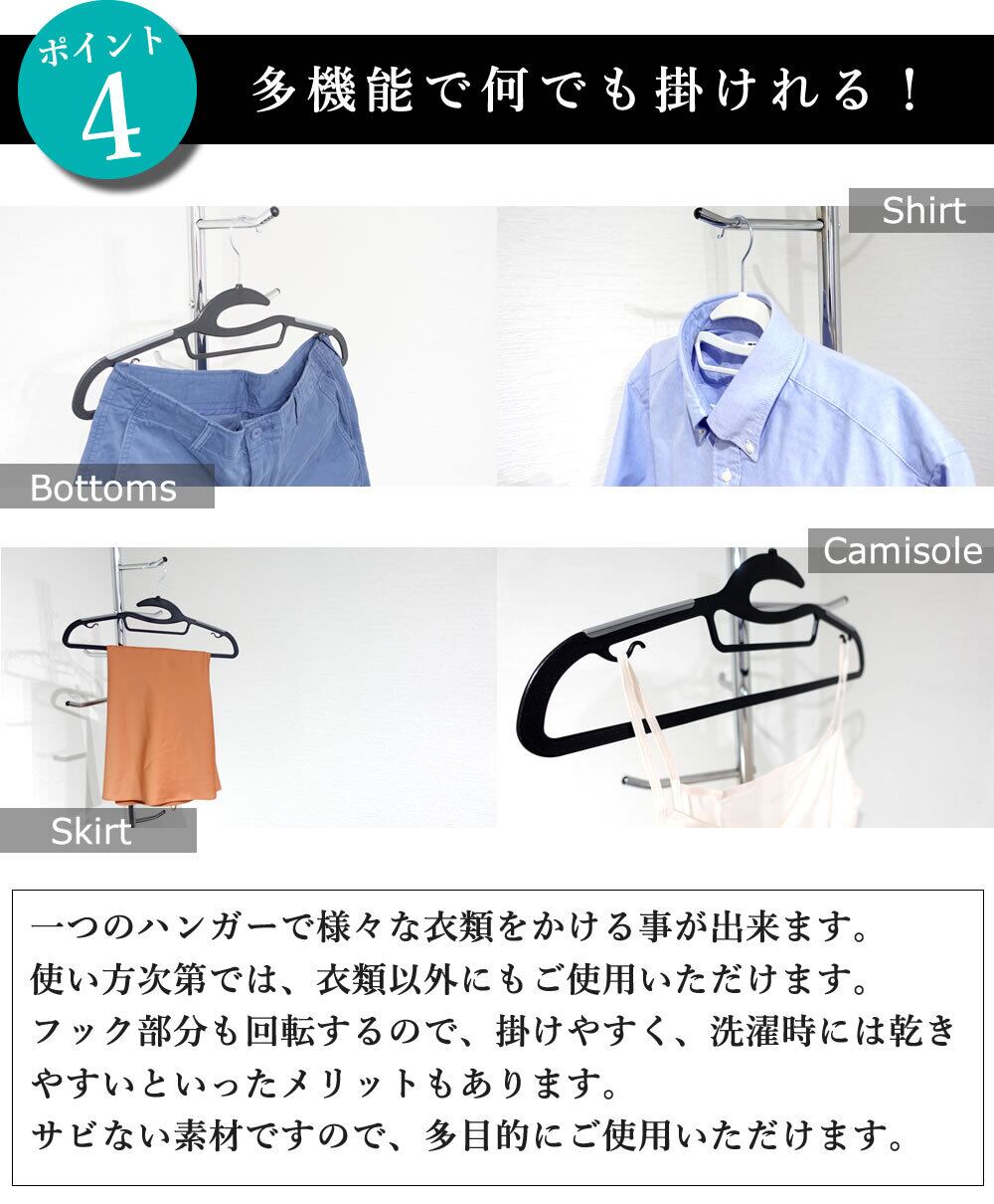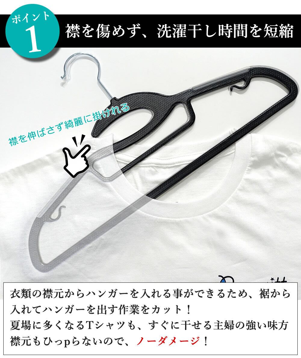 また肩部分にはすべり止めが装備されているので、首元が広いTシャツや女性衣類なども、落とさず掛けれます。