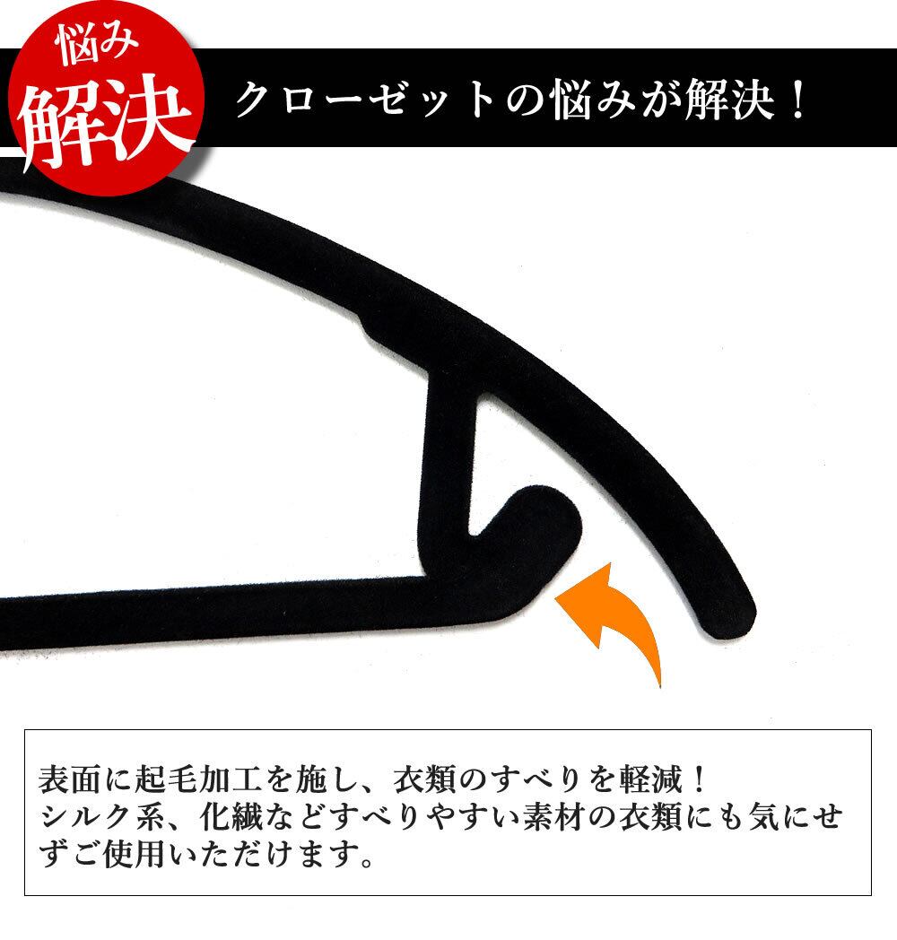 プラスチック素材と起毛を組み合わせてスリムで軽量なハンガーです。