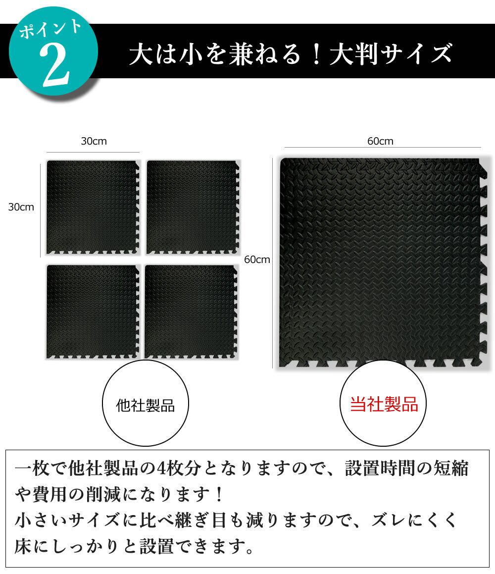 他社製品より大判(60cmタイプ)の為、枚数が少なく、敷く作業も楽ちんです♪