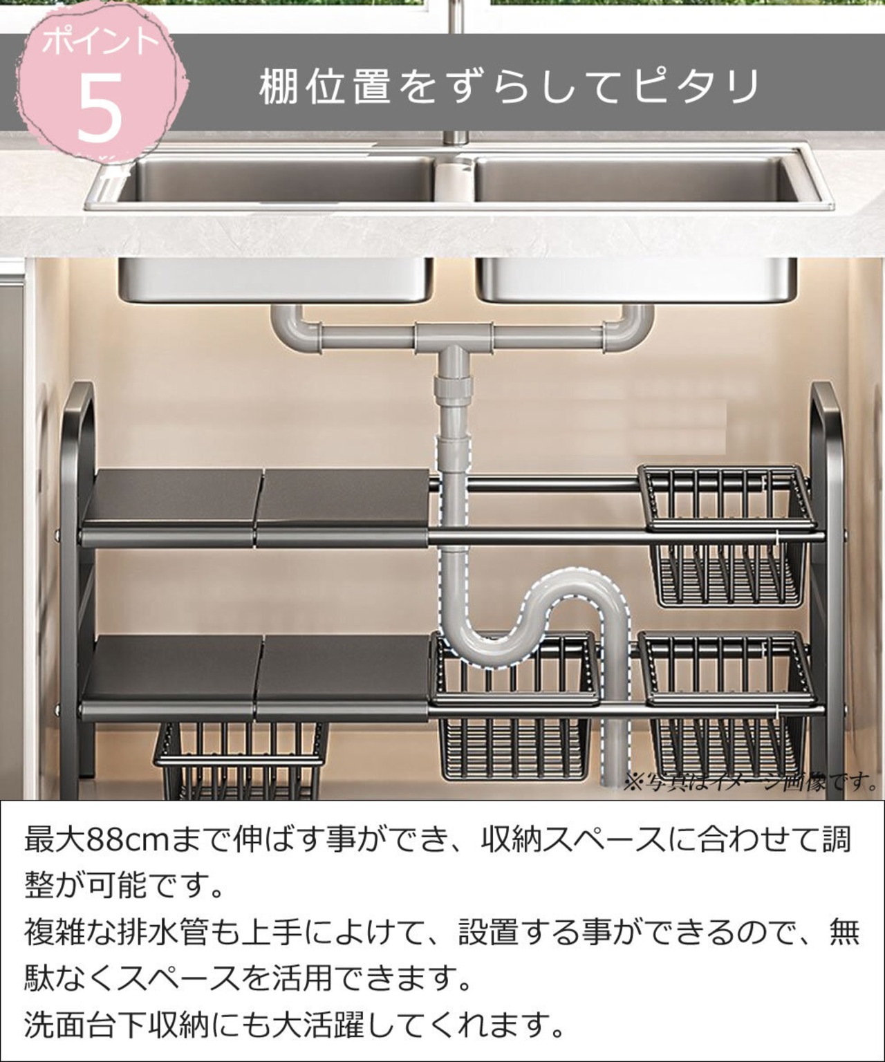 伸縮可能シンク下ラック