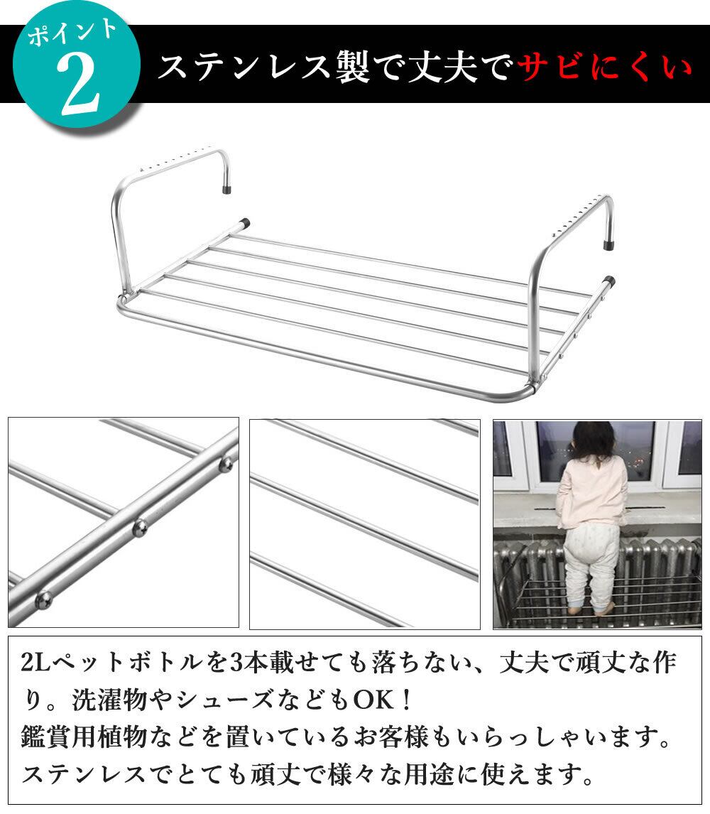 ベランダの壁や手すりに設置して、バスタオルや靴など何でも干したり置いたりできます。